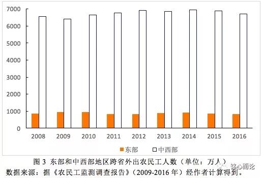 2.2 行政配置土地违背经济规律 在城市经济活动中的制造业和服务业是以建设用地作为其载体,而人们的居住生活也需要住房和商铺。故在通常的市场经济中,土地面积和土地利用强度应适应人口规模和产业发展的需求。而中国的土地供给是以建设用地指标的形式受政府直接调控的,且出于平衡区域经济总量发展的目的,建设用地指标供应向人口流出、经济发展水平落后的中西部倾斜。该土地政策的一个后果就是,新城大规模建设在了中西部省份和辽宁。 a) 东南沿海的快速发展吸引中西部人口的持续流入 改革开放后,东南沿海地区因为港口等地理优势,使其制造业迅速发展,引发了大规模的人口转移,每年有数以亿计的劳动力从内地来到沿海。且由于经济发展具有很强的规模效应,人口从中西部地区向东部地区转移的趋势并未因东部地区人口规模的增长而缓解,反而延续至今。图3显示了2008年至2016年东部和中西部地区跨省外出农民工的人数,可以看出东部地区每年跨省外出的农民工数量不足1000万人,而中西部地区农民工外出人数约6500万,其中流向东部地区的人数达5960万。[13] 而且这样大规模的持续人口流动在实施了开发中西部和振兴东北老工业基地等政策之后维持不变,显现出东部强大的经济集聚力,也符合全球范围内经济和人口向少数地理优势地区集聚的规律。 b) 新城建设的区位与人口流动方向背离 在中国偏向中西部的土地供应的政策背景下,[14] 新城建设大量出现在中西部的人口流出地。中西部省份由于有过剩的建设用地指标,建设新城-土地抵押与再融资-新城扩大建设的循环过程成为当地政府拉动短期经济增长的主要方式之一。地方政府在设立新区后,先对划入新区的地块进行基础设施改造,通过基建投资拉动经济增长;在新城的公共设施初具规模后,开始招商引资吸引企业,而实际引资规模往往远低于事先的规划。图4显示了东部和中西部地区截止到2013年开建新城的总体情况,可以看到人口流出的中西部地区新城规划的数量和规模都远远超出人口流入的东部地区。[15] 由于人口规模反映了当地的市场规模,并带来经济集聚的优势,人口的大量外流造成中西部地区市场的整体萎缩,新建的新城市场规模和增长潜力均不足。市场规模小,人力资本储备不足,难以吸引企业进驻;而企业不进驻,城市的公共设施和生活服务功能缺失,难以吸引人口流入。 三、 新城建设低效,发展缓慢,无力偿还先期债务 中国的新城建设是政府通过举债进行的基础设施投资,投资回报高于资金借贷成本是决定一项投资成功或者失误的基本标准。而新城建设中出现的问题本质上是利用成本高昂的资金进行土地开发,但土地利用未能与人口和产业的用地需求相匹配,所造成的建设效率低下、新城发展缓慢,债务本息沉重的问题。